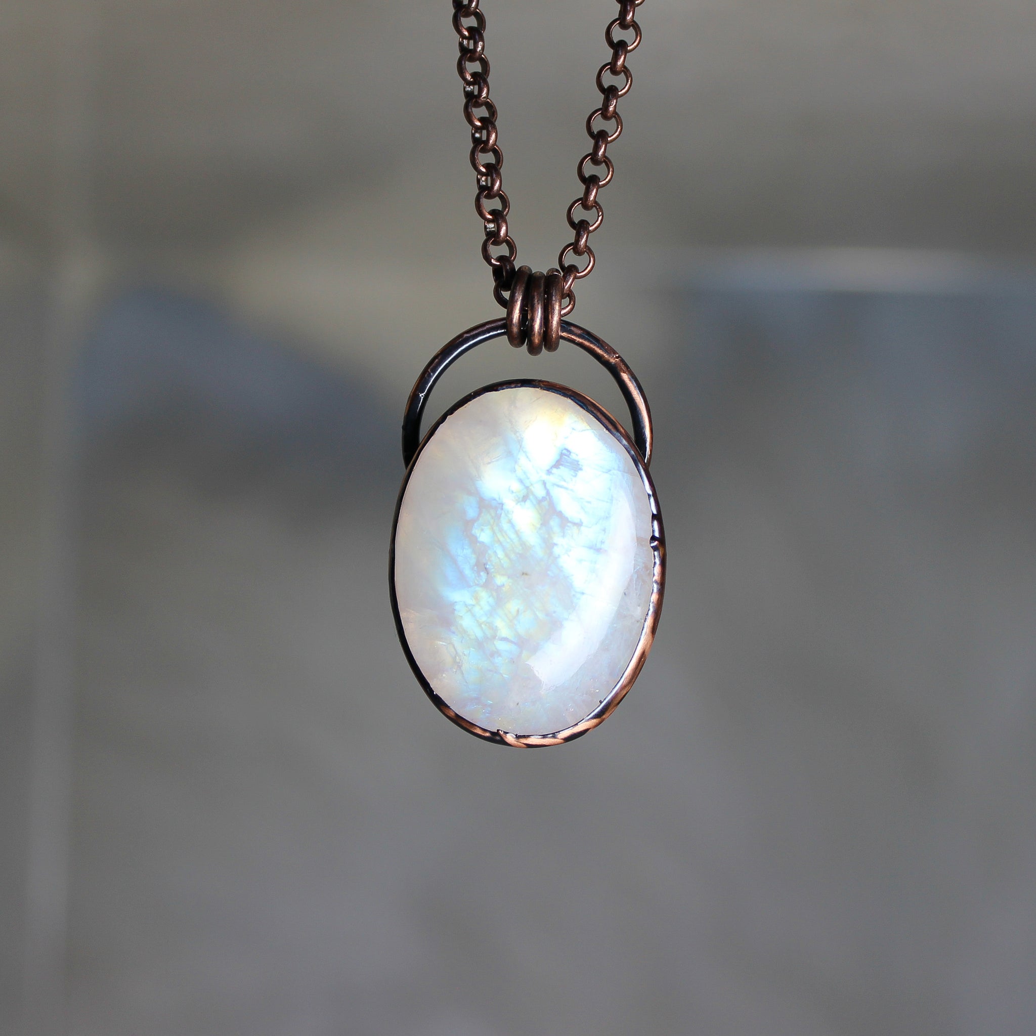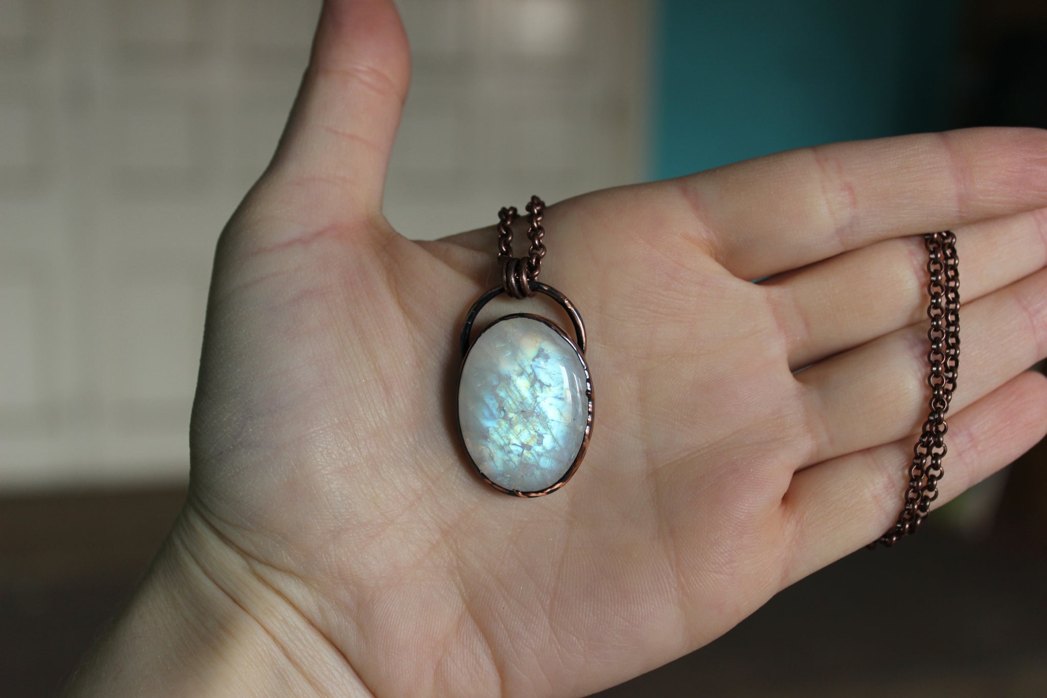 Rainbow Moonstone & Rose Quartz Moon Phase Necklace