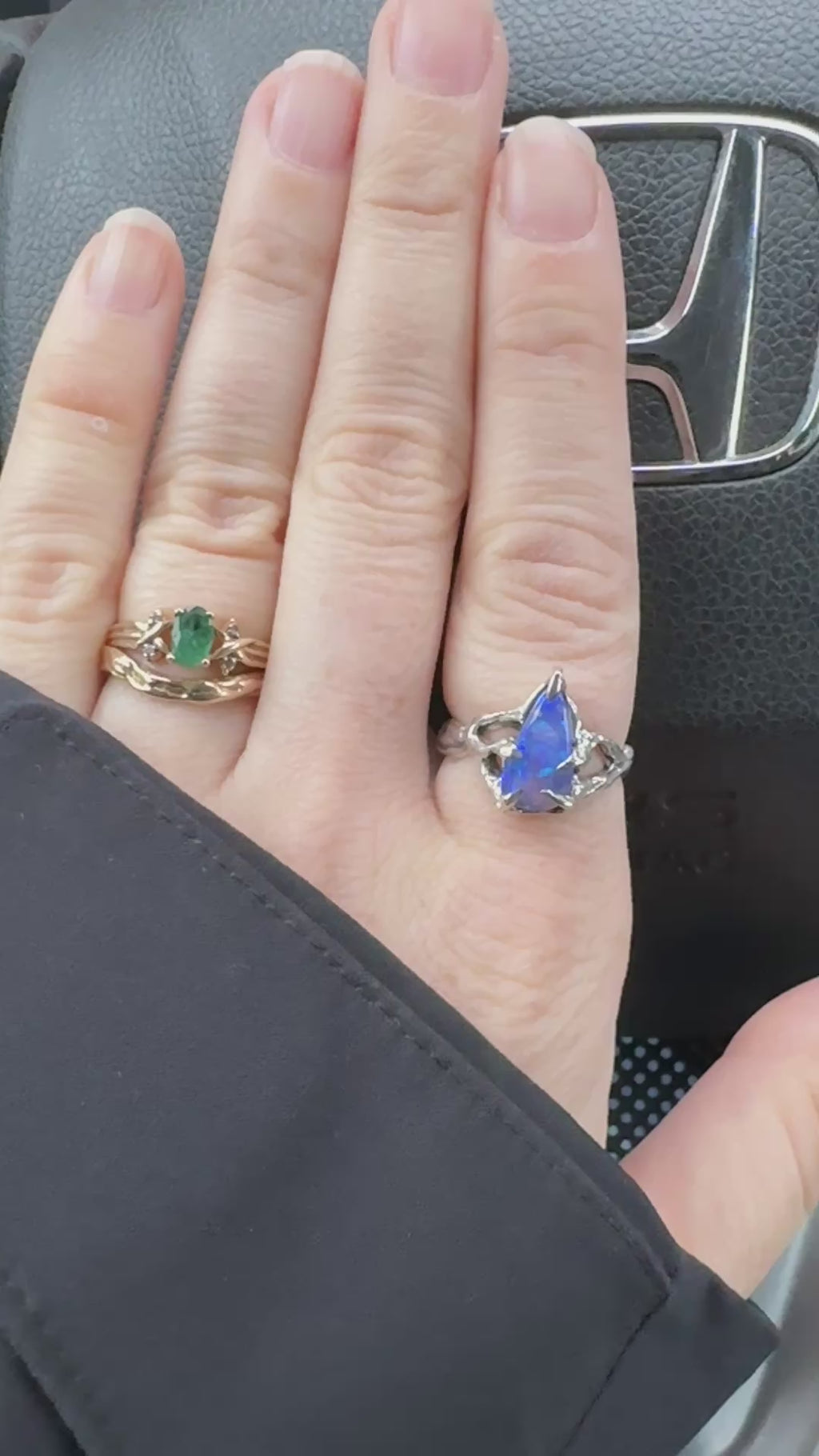 This ring is made using a stunning and very flashy deep purple/blue Australian Crystal Boulder Opal. Set in sterling silver, with a molten texture like an ancient relic.